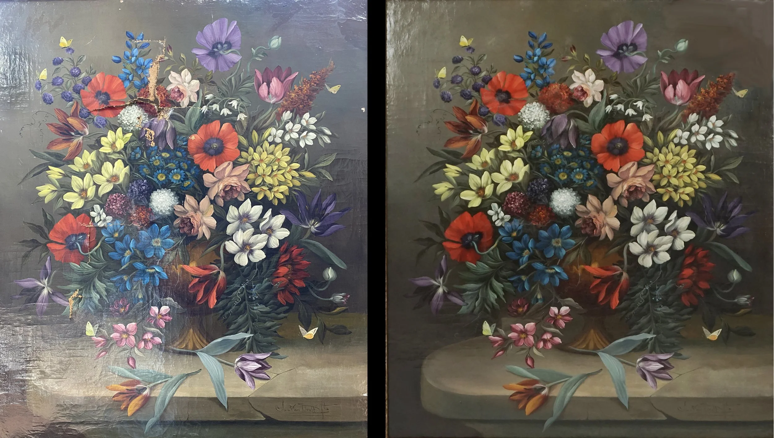 Our Conservator-in-Residence specializes in the preservation, repair and restoration of paintings to ensure their longevity and integrity. Using a combination of scientific knowledge, technical skill, and art historical expertise, we carefully stabilize materials, clean surfaces, and repair damage while respecting the artist’s original intent. Our work protects cultural heritage and irreplaceable family treasures—allowing paintings, sculptures, and other artworks to be appreciated by future generations.